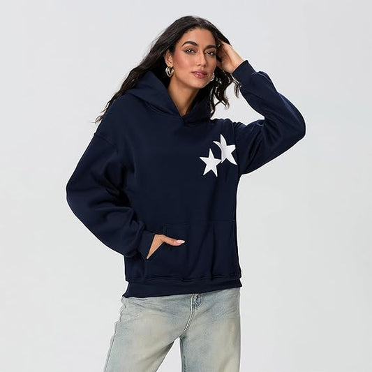 Women Y2K Turtle Aesthetic Embroidered Long Sleeve Hooded Sweatshirts with Kangaroo Pocket Drop Shoulder Loose Fit Pullover Tops